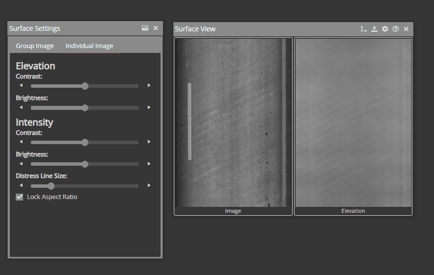 Users have the ability to adjust brightness and contrast of surface images as a group or individually: