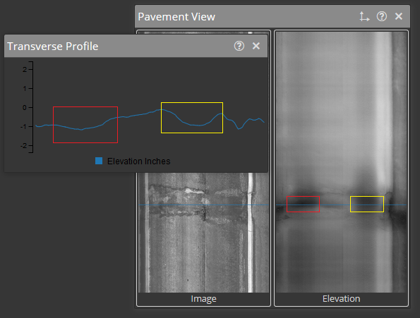 Users have the ability to also toggle distresses on either the “Image” or “Elevation” section of the Pavement View Window.