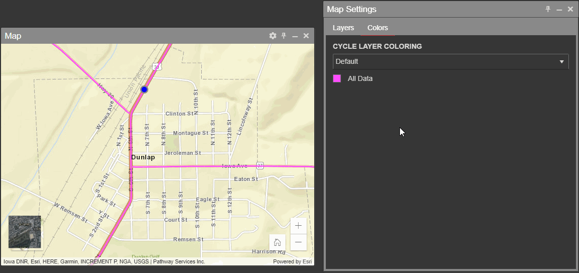 In the Map Settings window, click on the Colors tab. There you can choose to color the lines on your map based on IRI or rutting values.